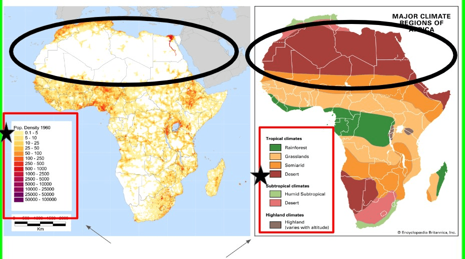 Why does the northern part of Africa have very low population density?