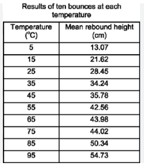 A study was done to see if temperature affected how high a ball bounced. What conclusion can you write about the data?